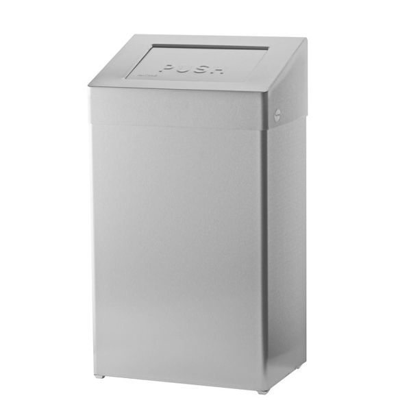 nástenný alebo voľne stojaci odpadkový kôš, samosklopné veko, matný nerez AISI304 – Cr/Ni 18/10 hr. 1,2 mm