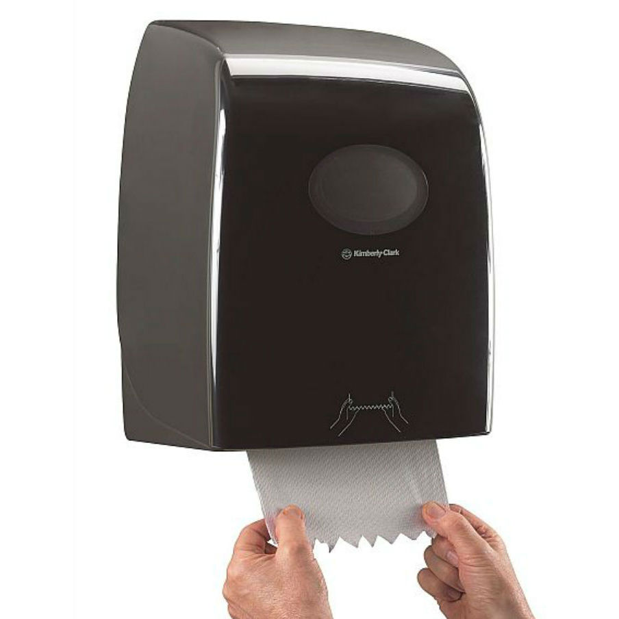prevedenie | nástenný bezdotykový zásobník papierových uterákov v kotúči, ABS plast, dávkovanie ťahom, priehľad na kontrolu naplnenia, automatické odrezanie 25 cm uteráka |