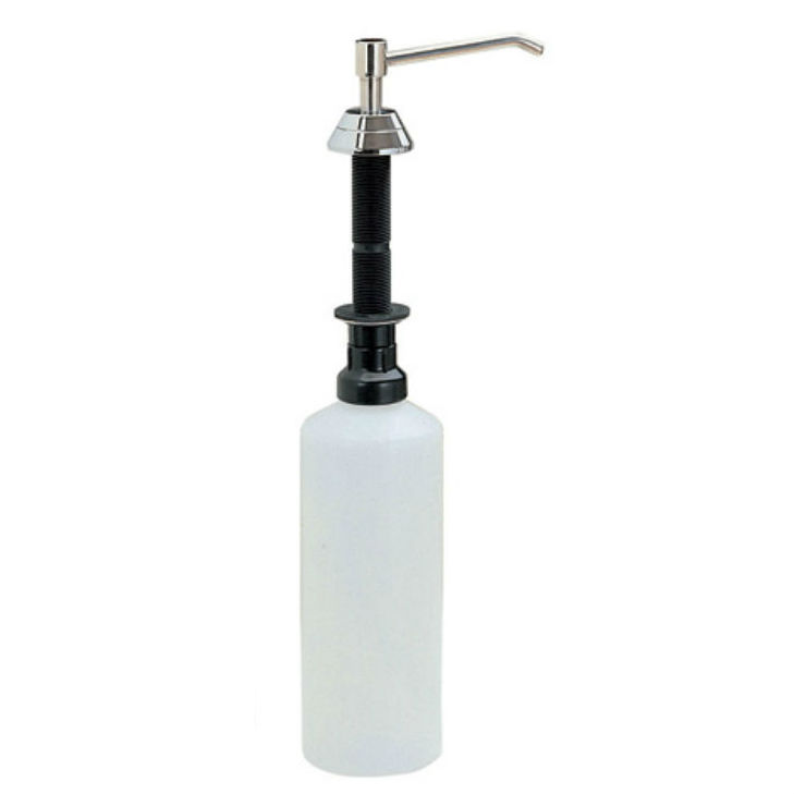 pultový dávkovač tekutého mydla, lesklý nerez, plastová nádoba,