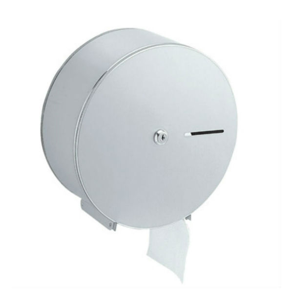 nástenný zásobník toaletného papiera, matný nerez AISI304 – Cr/Ni 18/8 hr. 0,8 mm, kovový zámok, priehľad na kontrolu naplnenia
